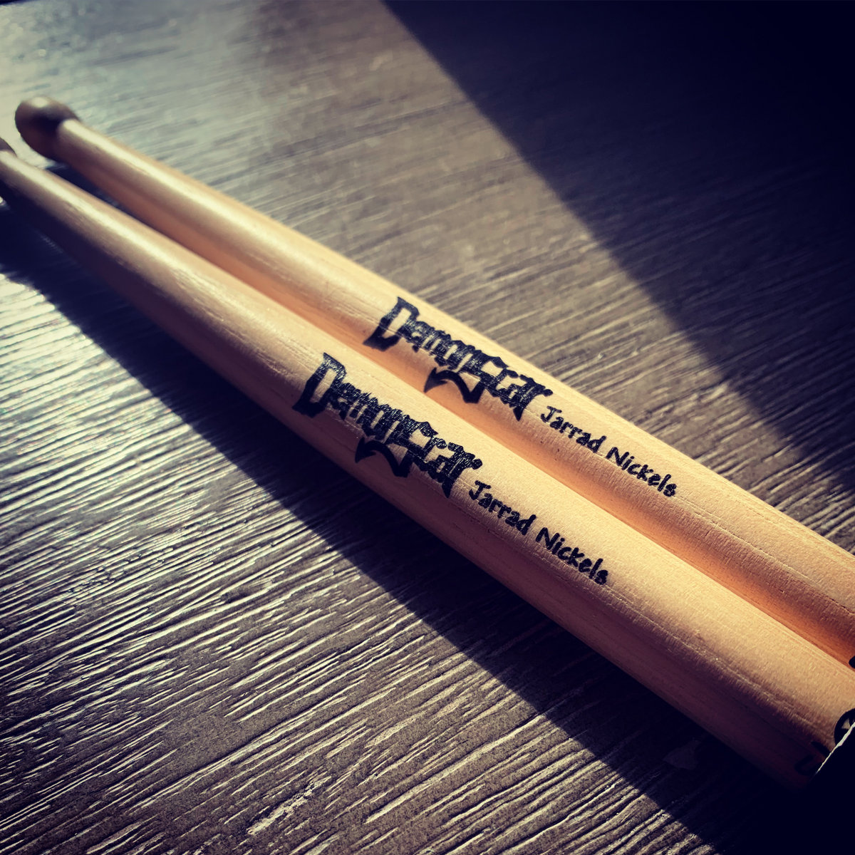 Get your own fresh new pair of custom DemonScar drumsticks, the same signature sticks used by Jarrad Nickels. Each stick includes the official DemonScar logo in black next to Jarrad Nickel's printed name, also in black ink. See picture for detail and other specs below.